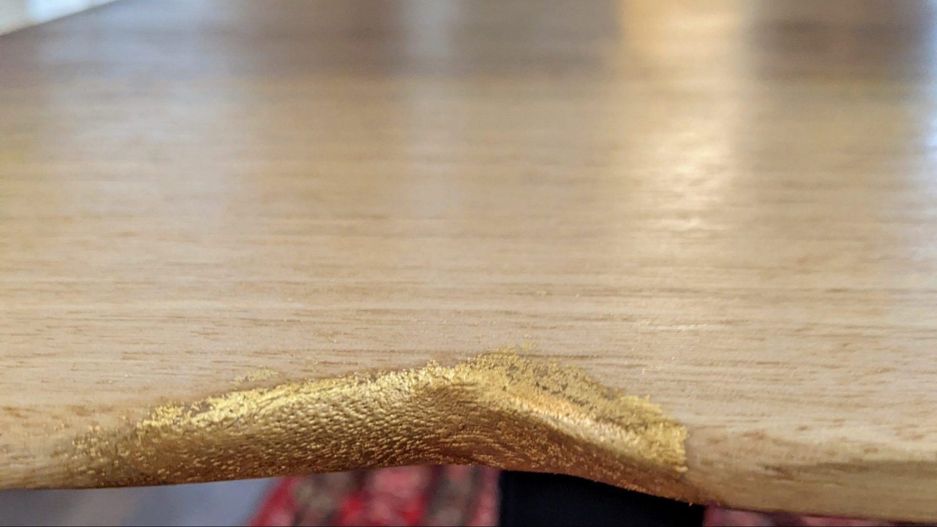This table is the result of a disaster. Five days ago it included the two pieces of white oak you