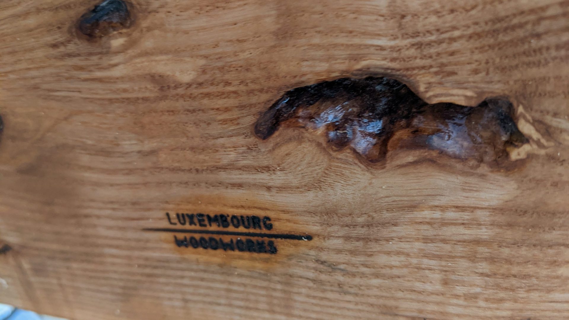 Black walnut (live edge) from Alderfer Lumber, cut to this size (to shape an upcoming desk build) and notched. Metal